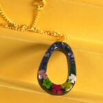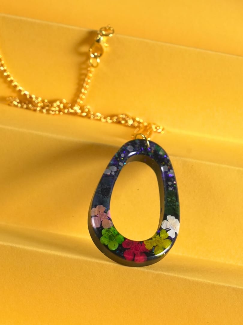 Materials: Resin, Pressed Flower, Glow-In-The-Dark Glitter, Pigment, Gold Plated Base