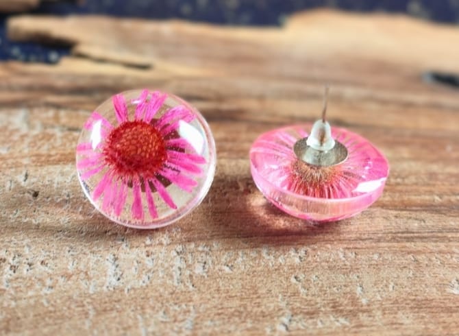 Materials: Resin, pressed flowers, Silver Plated Earring Post back