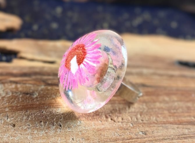 Materials: Resin, preserved flower, Silver Metal Alloy base.
