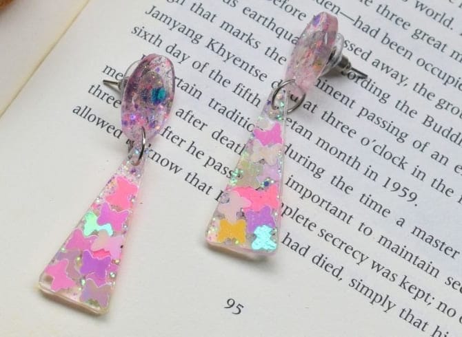 Materials: Resin, Glitter, Butterfly Inserts, Silver Plated Flat Earring Post