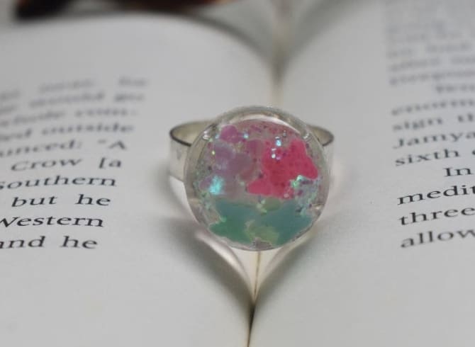 Materials:Resin, Glitter, Butterfly Inserts, Silver Plated Ring Base
