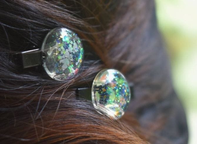 Materials: Green glow-in-the-dark glitter, Metal Hairpin base