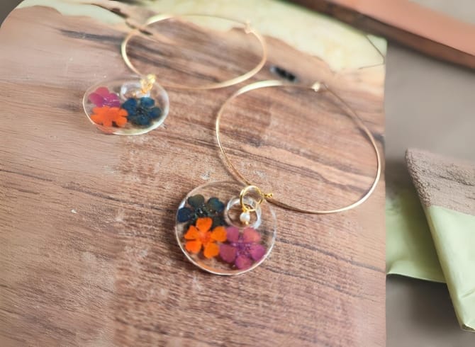 Material:Resin, Pressed flowers, loreal pearls, Gold-Plated Hoops