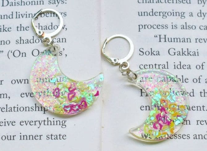 Materials: Resin, Holo Glitter, Star and Heart Inserts, Silver Plated Lever Back