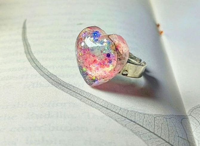 Materials: Resin, Holo Glitter, Silver Plated Ring Base