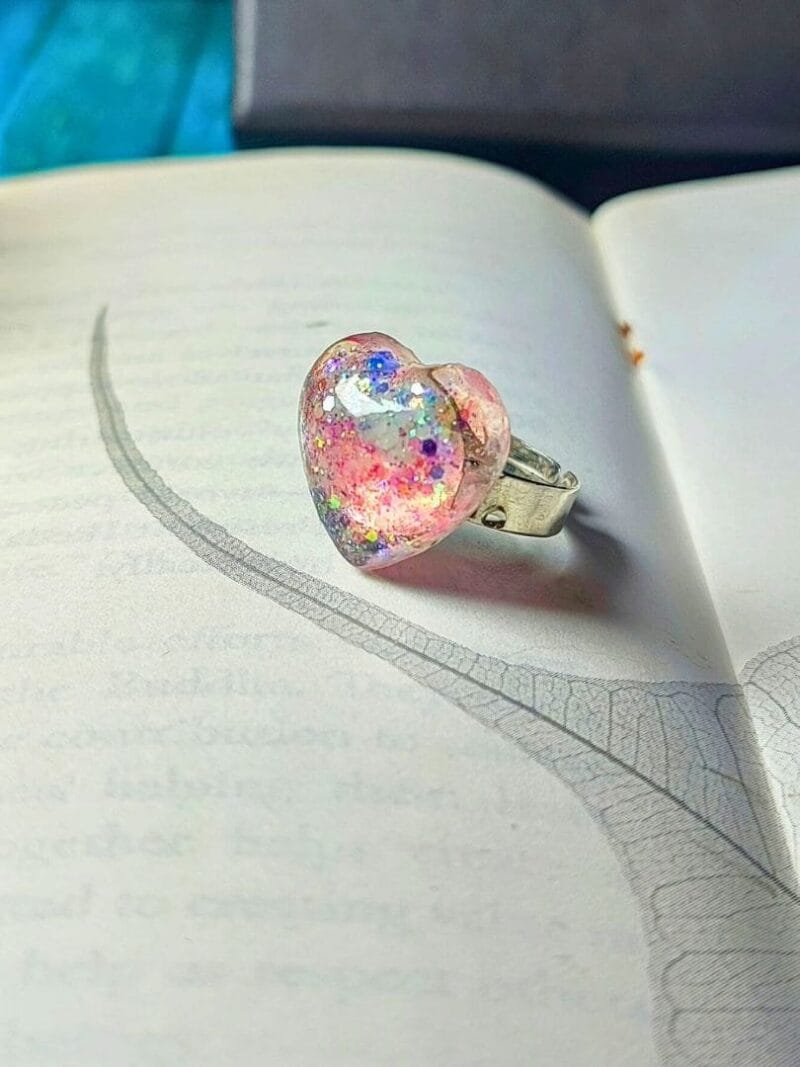 Materials: Resin, Holo Glitter, Silver Plated Ring Base