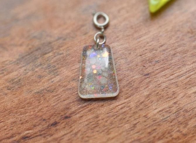 Design Inspiration: Inspired by the joy of self-expression and the magic of embracing your unique spirit, this bracelet charm is a celebration of individuality and creativity. It serves as a radiant reminder to embrace the things that make you happy and to always find joy in the little things. The vibrant hues of the glitter dance and shimmer with each movement, reflecting the light and casting a spell of enchantment wherever you go. This enchanting charm features a double-sided design and serves as a playful symbol of fun, joy, and the simple pleasures of life, reminding you to embrace the moments of laughter and delight that make life so special.