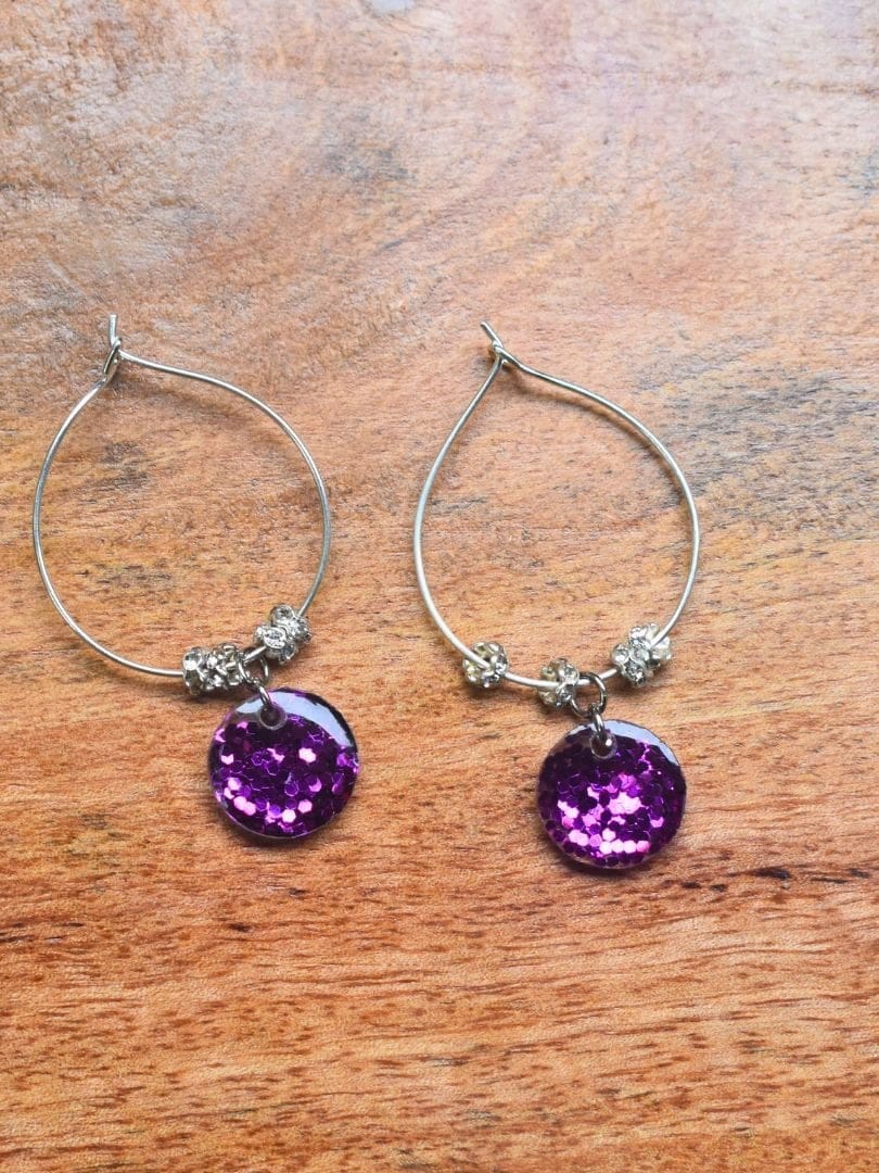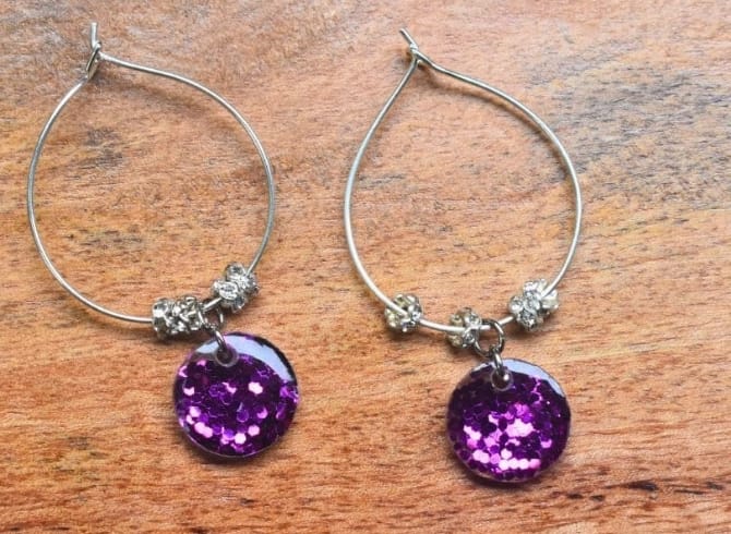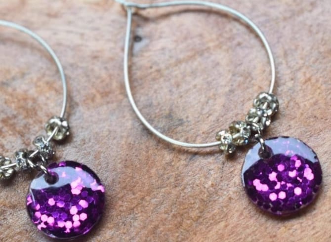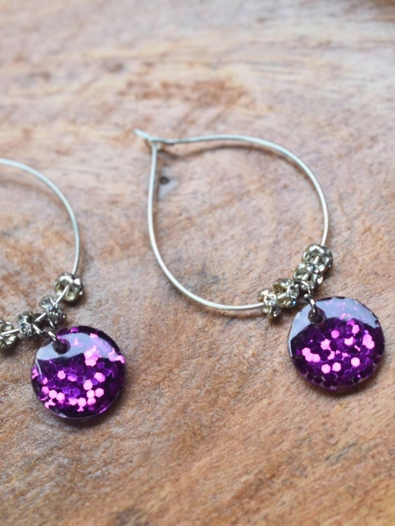 Materials: Resin, Glitter, Rhinestone Beads, Silver Plated Hoops