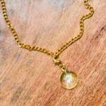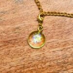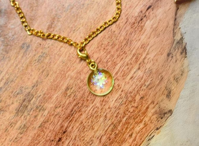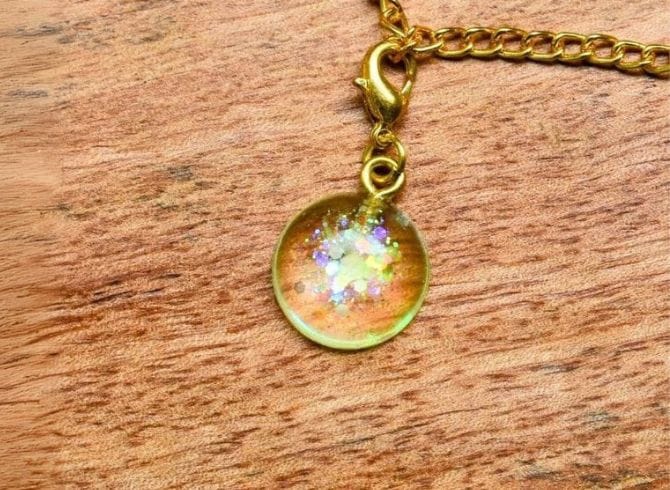 Materials: Resin, glitter, gold plated clasp