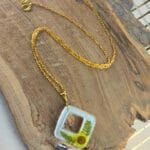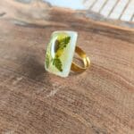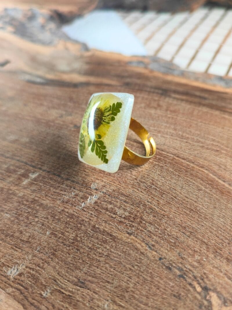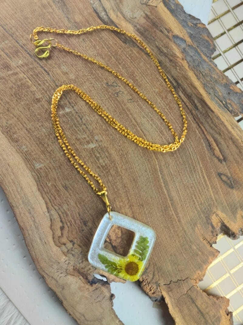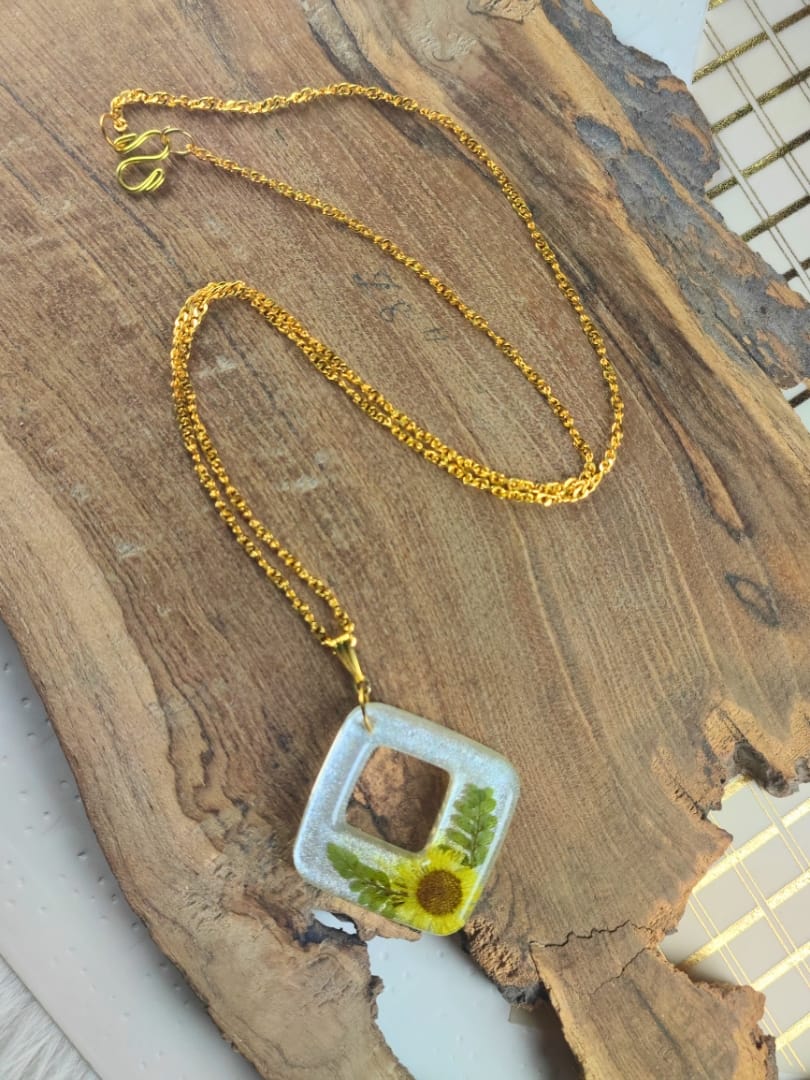 Materials: Resin, Pressed Flower, Dry Foliage, Pearl Pigment, Gold Plated Base