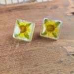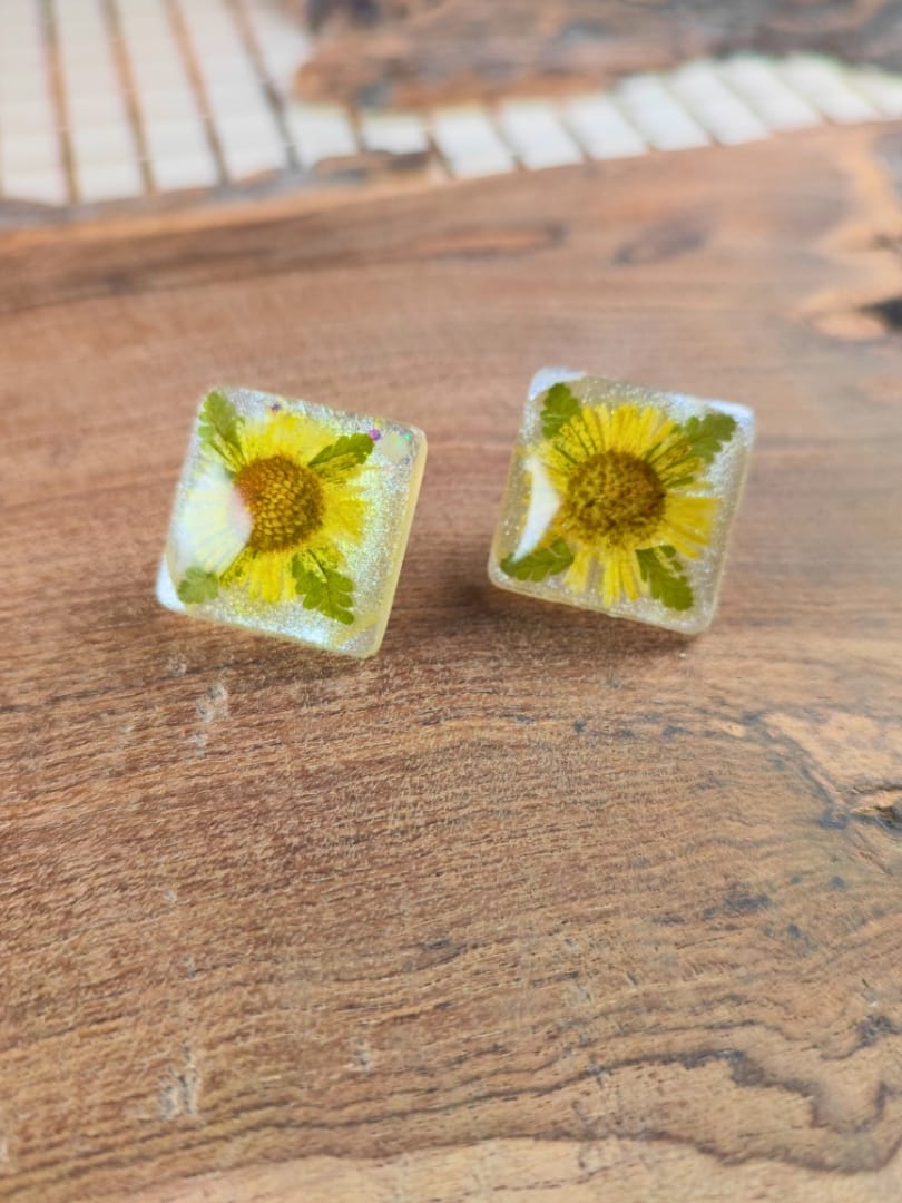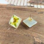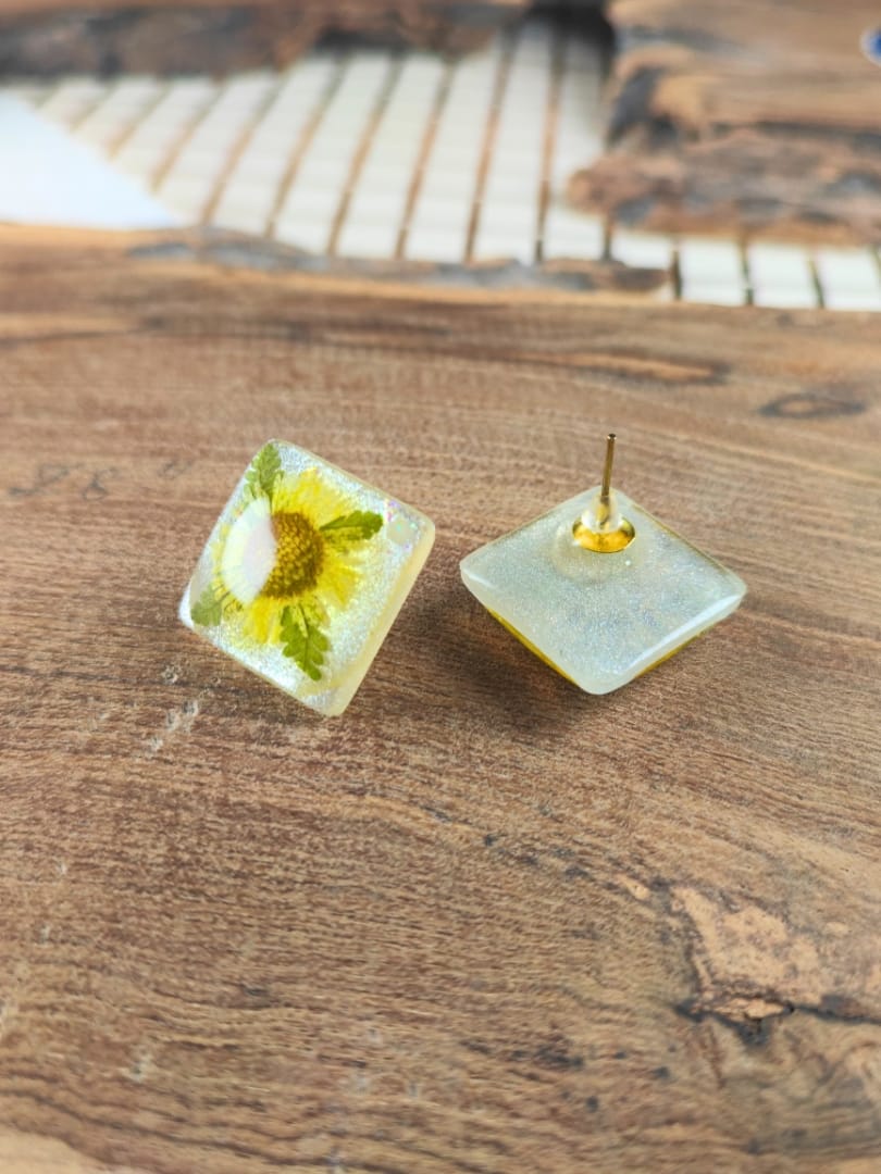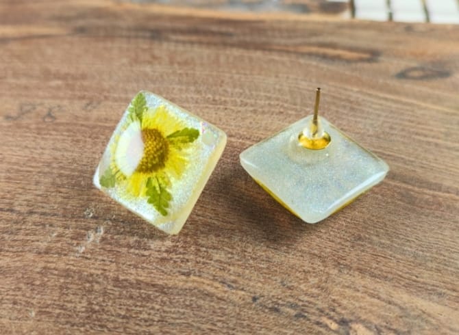 Materials: Resin, Pressed Flower, Dry Foliage, Pearl Pigment, Gold Plated Flat Post Back