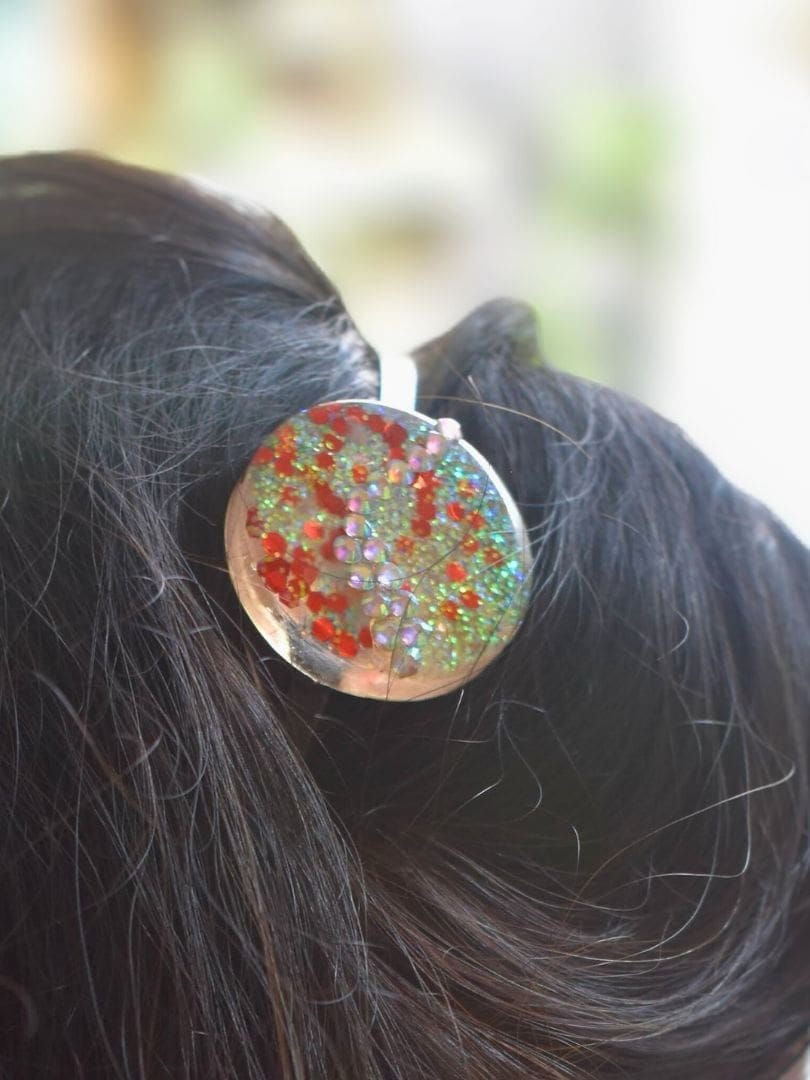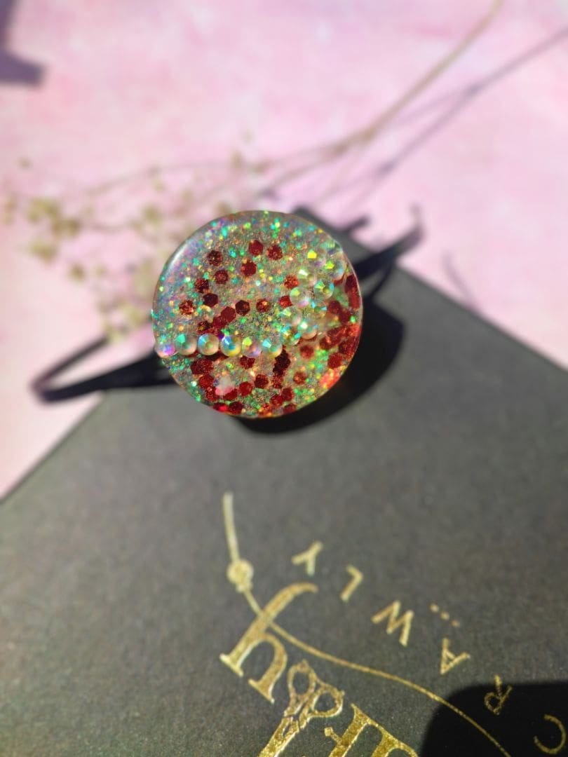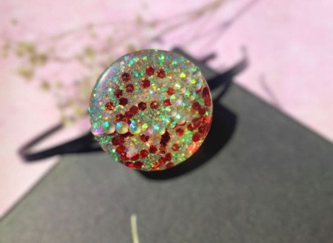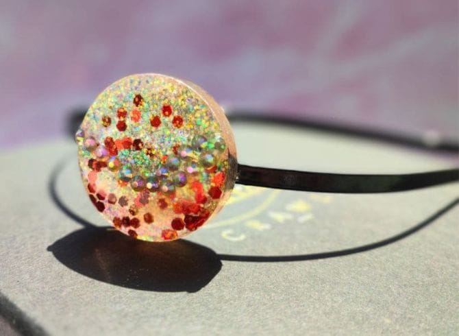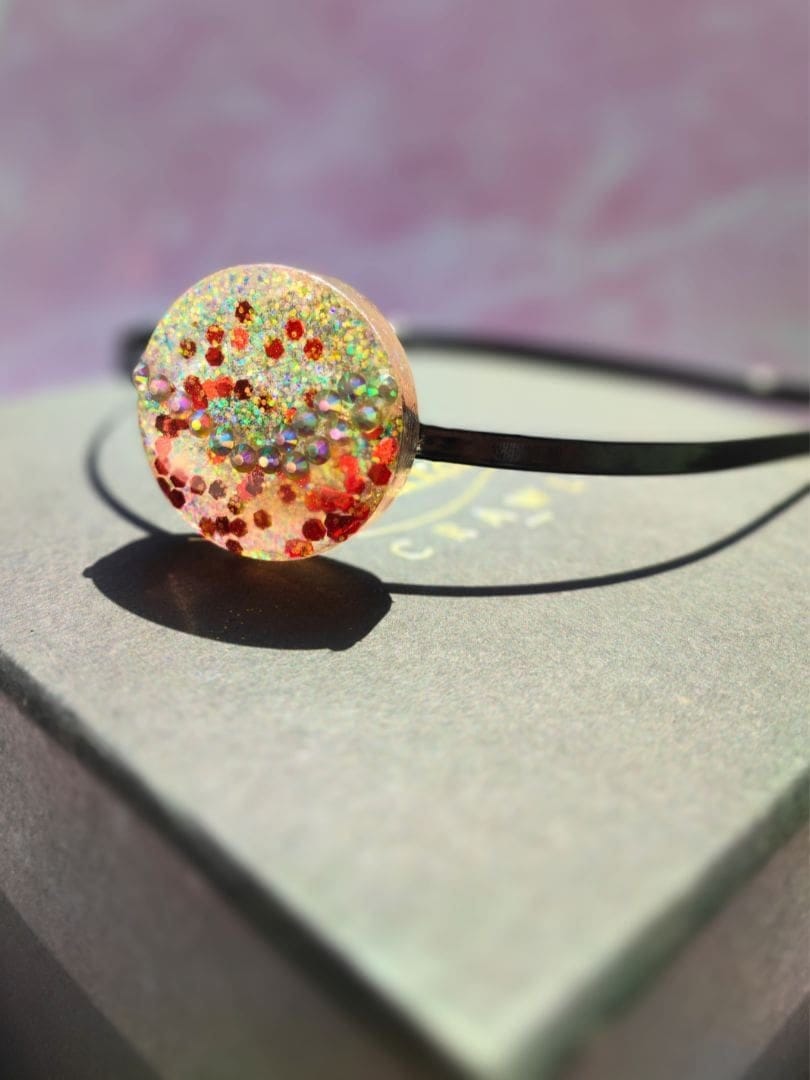 Materials: Resin, glitter, Metal headband base