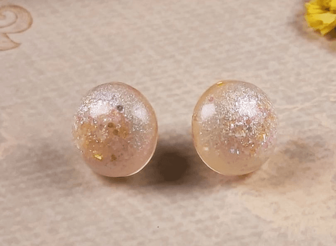 Materials: Resin, Holo Glitter, Peach Pigment, Gold Plated Flat Earring Post