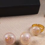 Design Inspiration: Inspired by the vibrant hues of ripe peaches and the enchanting glow of twilight, each piece in this set is a celebration of joy, creativity, and individuality. This set features a stunning ring and a pair of earrings adorned with multicolor glow-in-the-dark glitter and infused with a luscious peach pigment, exuding a playful yet elegant allure.