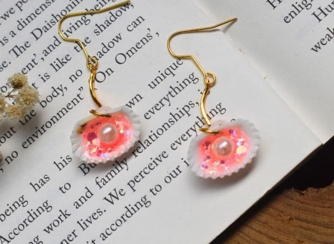 Design Inspiration: The neon pink resin, shaped like a delicate shell embracing a pearl, adds a pop of energy and excitement to your look. The combination of the vivid hue and the classic pearl creates a striking contrast, making these earrings a unique and eye-catching accessory.
