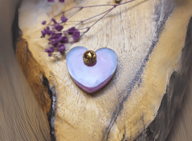 Embrace the magic of love with our Resin-made Purple Heart Brooch. Let your inner romantic shine through with this enchanting accessory that celebrates the beauty of the heart. Whether worn alone or paired with other favorites, this brooch is sure to bring a smile to your face and spark joy wherever you go. Elevate your jewelry game today.