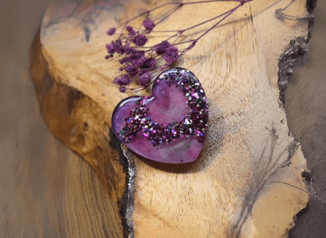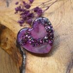 Design Inspiration: Crafted with meticulous attention to detail, this exquisite brooch features a heart-shaped design, symbolizing affection and romance. The vibrant purple glitter adds a touch of sparkle and allure, creating a mesmerizing effect that’s sure to turn heads.