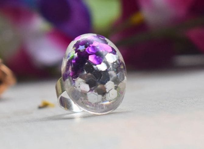Magic Infusion: Glitter Materials: Resin, Glitter, Silver Plated Ring Base