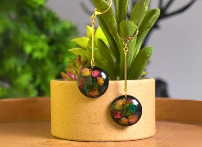 Materials: Resin, pressed flowers, Gold Plated Earring lever back