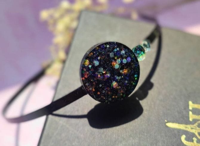 Design Inspiration: Crafted with meticulous attention to detail, this headband boasts a sleek black color design embellished with shimmering glitter that mimics the twinkling stars of a clear night. The celestial motif adds an enchanting touch to any hairstyle, whether you’re rocking loose waves or a sophisticated updo.