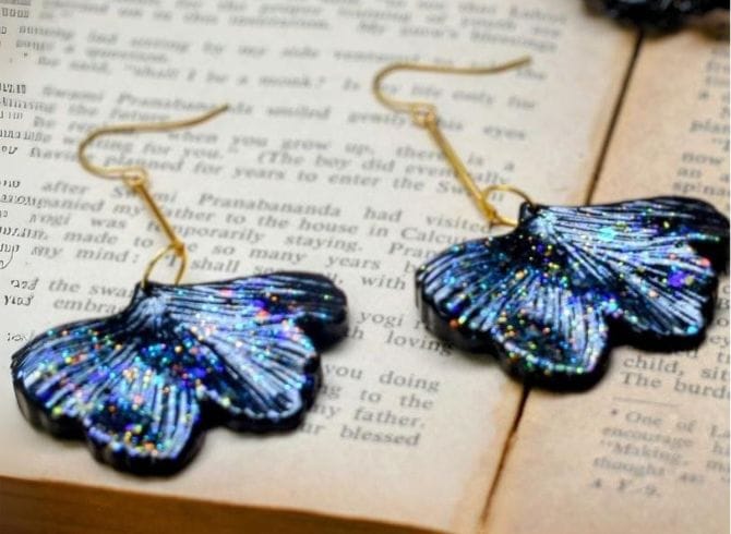 Materials: Resin, Holographic Glitter, Gold Plated Hook Wire