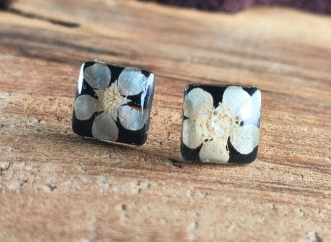Materials: Resin, pressed flowers, Gold Plated Earring Post back