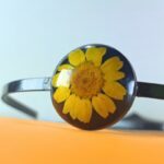Design Inspiration: Inspired by the warmth of the season, our Yellow Daisy Hairband is perfect for adding a pop of color to any outfit. Crafted with a captivating yellow Daisy dry flower and accented by bold black pigment, this round hairband is a statement piece that exudes confidence and style.